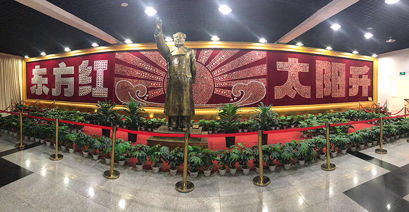 陳列館展廳內(nèi)由成百上千枚像章組成的“東方紅,太陽升、“學(xué)習(xí)雷鋒好榜樣”字樣,還有由2萬枚像章組成的“東方紅太陽升”巨幅標(biāo)語,“好好學(xué)習(xí),天天向上”等主席語錄和長(zhǎng)城、國(guó)旗、五星造型等也顯得蔚然壯觀。